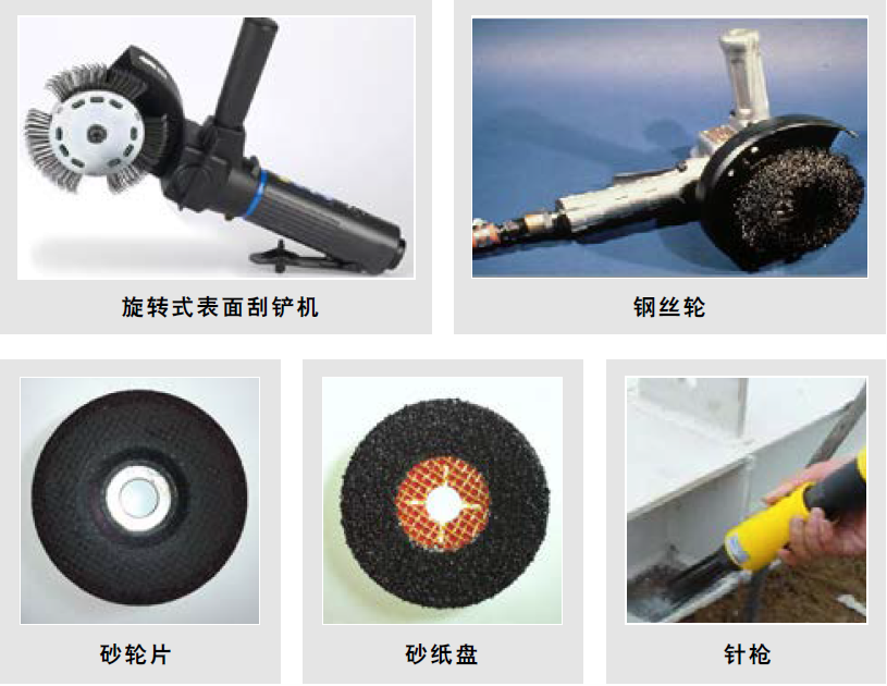 手工和動(dòng)力工具清理前,應(yīng)鏟除全部厚銹層,可見(jiàn)的油、脂和污物也應(yīng)清除掉;手工和動(dòng)力工具清理后,應(yīng)清除表面的浮灰和碎屑。